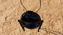 A dung beetle pushes dung up a mountain.
