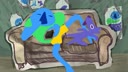 Struggling with his game, Plugg the outlet man consults the Internet for help.